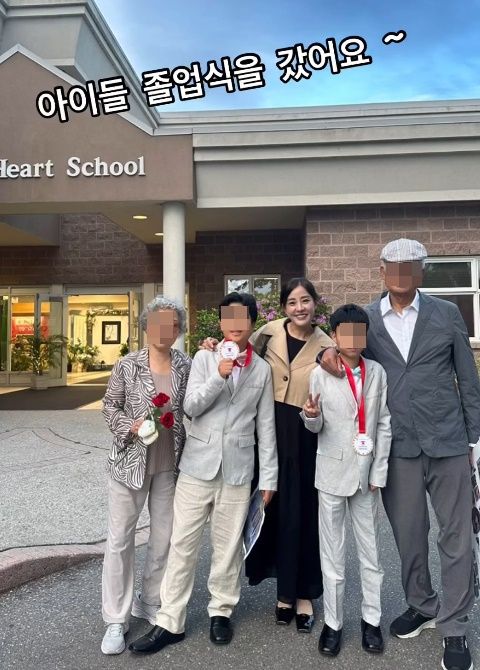 4일 박은혜는 "아이들 졸업식을 보러 부모님 모시고 슝 날라갔어요"라는 글을 게재했다.