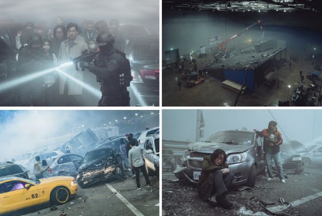 실제 공항대교에 버금가는 세트를 제작한 데 이어, 100중 추돌 사고 장면을 위해 무려 300대 이상의 차량이 동원되었다고 전해져 놀라움을 더한다. 제작진은 각종 뉴스와 기사, 교통사고 조사 보고서 등 수많은 자료를 바탕으로 사고 차량의 종류와 크기, 주행 속도와 차량 간의 간격, 차선, 바닥 재질, 그리고 바람과 안개 등 날씨 요소까지 철저하게 분석했다. 그 결과를 토대로 300대 이상의 차량을 파손의 정도에 차이를 두며 촬영을 진행해 디테일을 한층 더 높였다. 이와 같은 제작진의 노력과 열정 덕에 배우들은 실제로 사고 현장에 있는 듯한 생생한 공포감을 느끼며 몰입할 수 있었다.