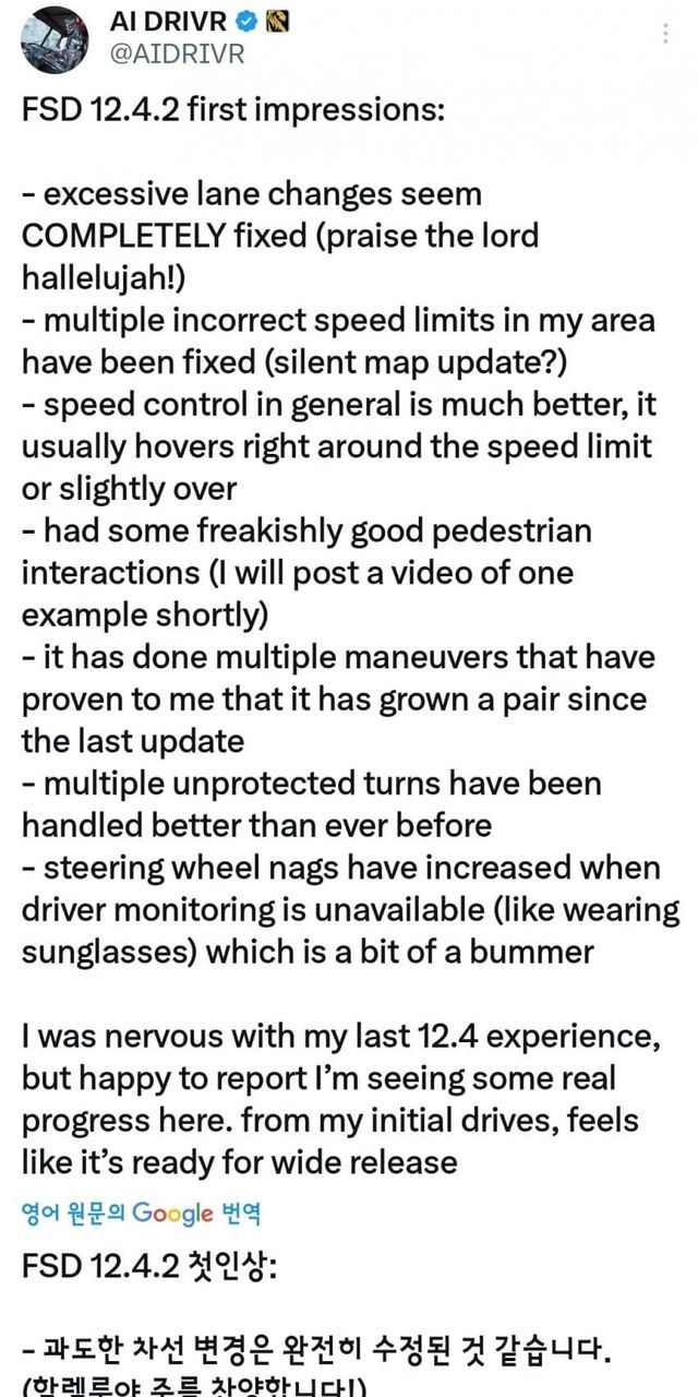 (약 8분짜리 FSD v12.4.2 시내 주행 영상)
