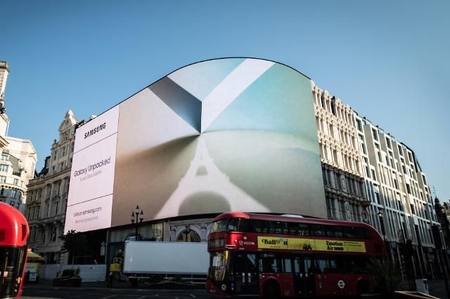 为即将于本月10日举行的“Galaxy Unpacked 202”造势,三星电子日前在全球各地主要地标投放数字户外广告。图为英国伦敦皮卡迪利广场的电子显示大屏播放“Galaxy Unpacked 2024”宣传视频。【图片提供 韩联社】