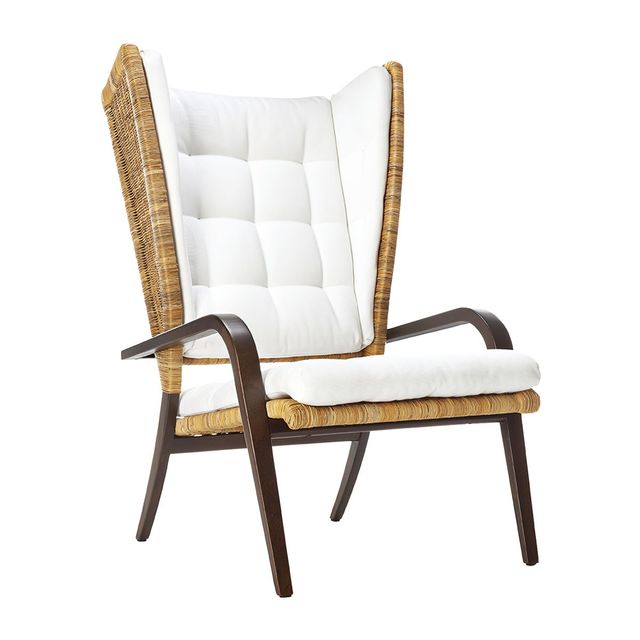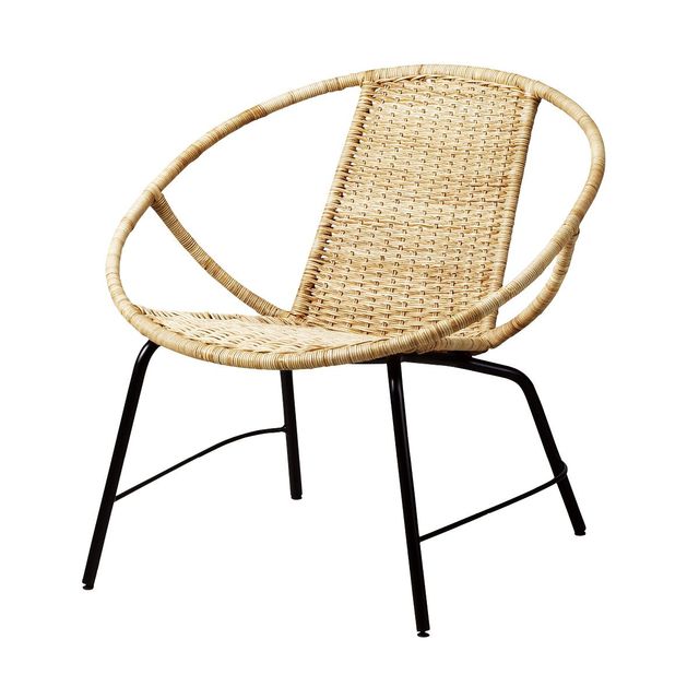 라탄 시트와 블랙 스틸 레그가 대비되는 암체어는 11만8천원,