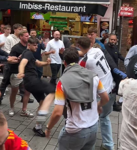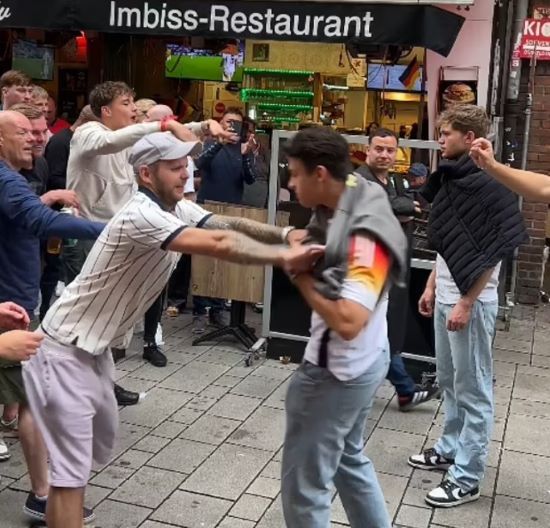 영국 매체 '데일리 메일'은 6일(한국시간) "잉글랜드 팬들과 독일 팬들 사이에 유로 2024에서 독일이 탈락한 후 싸움이 벌어졌다"며 "잉글랜드 팬들이 독일 팬들을 조롱했고 경찰이 알슈타트에서 술을 마시던 거리의 양쪽을 봉쇄하자 팬들의 주먹이 오고 갔다"고 전했다.