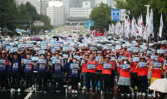 전국공무원노동조합(전공노)과 대한민국공무원노동조합총연맹, 전교조 등 6개 단체는 이날 오후 2시부터 서울 종로구 정부서울청사 앞에서 ‘공무원 임금 인상 쟁취 총궐기대회’를 진행한다. 공무원 2만여 명은 △공무원 임금 기본급 31만 3000원 정액 인상 △하위직 정근수당 인상 △점심값 1만원을 위한 정액급식비 8만원 인상 △직급보조비 3만원 인상 등을 정부에 촉구할 방침이다.