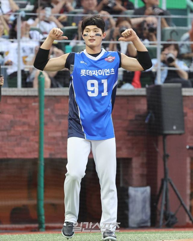 롯데는 전날(5일) 퓨처스(2군) 올스타부터 올스타전 퍼포먼스에 사활을 걸었다. 인기 걸그룹 에스파의 카리나 시구 선생님 역할을 맡았던 박준우의 '카리나 코스프레'에 이어 올스타전 본경기에 나선 황성빈의 '배달의 마황 코스프레'까지. 축제인 만큼, 팬들을 즐겁게 하는 데 집중했다. 지난해엔 '사직 제니' 김민석이 퍼포먼스상을 수상한 바 있다. 올스타전 퍼포먼스의 '명가'의 일원답게 윤동희도 '동희진' 코스프레로 팬들을 열광케 했다.