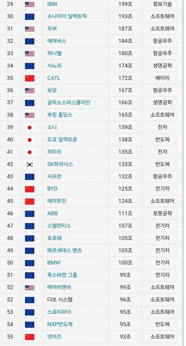 보다시피 미국과 유럽의 기업들만 이름을 올렸다.