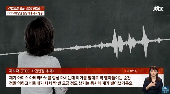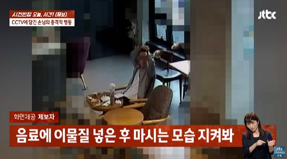 지난 5일 JTBC '사건반장'은 카페를 찾은 한 남성 손님이 여성 직원이 마시던 음료에 정체불명의 이물질을 넣었다는 제보를 보도했다.