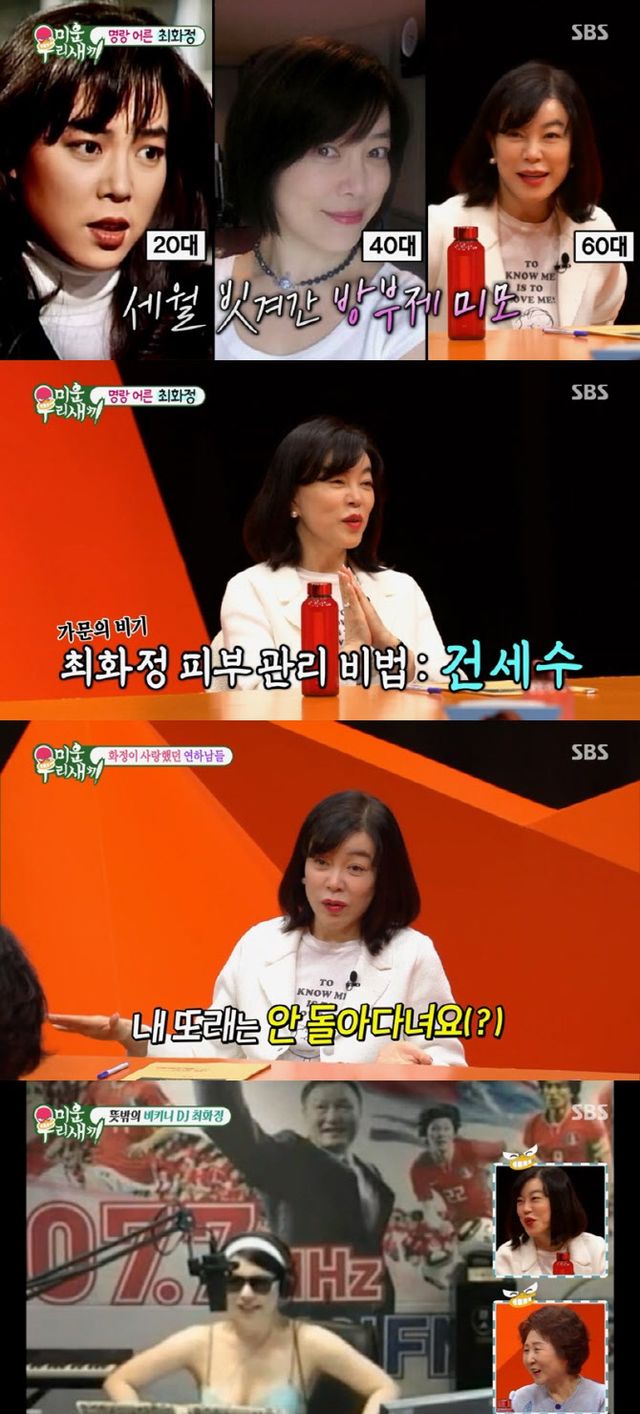 한편 최화정은 ‘연하 킬러’라는 루머에 대해 “내 또래는 활동을 안 한다. 어차피 활동하는 사람들이 다 연하다”라며 유쾌한 해명을 내놓았다. 최화정은 “처음엔 누나라고 하다가 나중엔 베이비라고도 한다. 너무 잘 챙겨줬더니 ‘엄마냐’라고 하길래 정신이 번쩍 났다”라며 연하남에게 들어본 충격 애칭에 대한 에피소드를 공개했다.