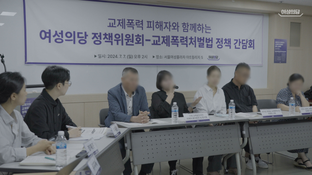 여성의당 주최로 7일 서울 동작구 서울여성플라자에서 열린 교제 폭력처벌법 정책간담회에 모인 교제 폭력 피해자 유가족들은 각자가 겪은 수사·재판 과정에서의 2차 피해를 공유하며 "우리 가족과 같은 피해자가 나오지 않도록 위한 제도 개선이 시급하다."고 호소했다.