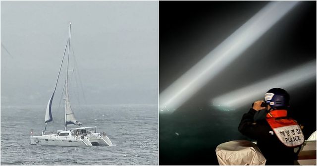 당시 신고를 받은 해경은 수색을 위해 3000t급 경비함 7척과 해경 헬기 등을 동원해 요트 수색에 나섰으나, 강한 바람과 시정이 좋지 않아 복귀했다.