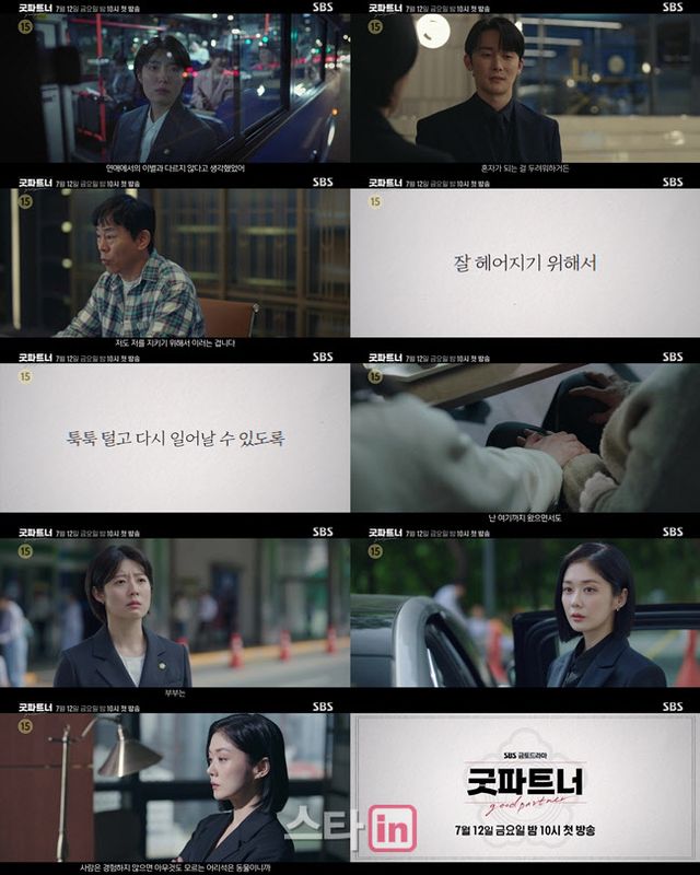 ‘굿파트너’ 제작진은 “이혼에 대한 고정관념과 편견을 깨트리며 성장과 더 나은 삶을 위해 응원해 줄 수 있는 드라마다”라면서 “평범한 사람들의 특별한 성장기가 따뜻한 공감과 위로를 전할 것”이라고 전했다.