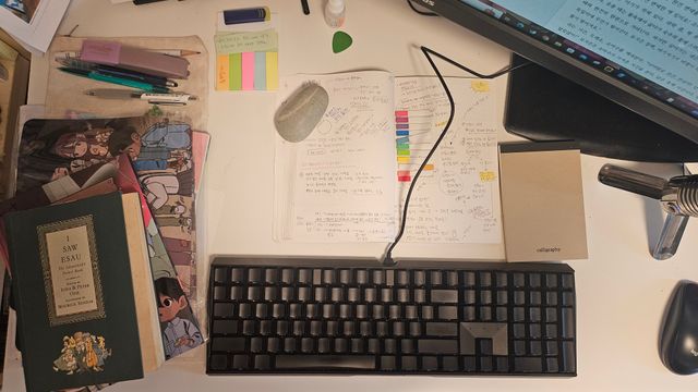 네, 미스터리 좋아합니다! 공포는 책으로만 즐겨요. 영상은 자극이 너무 노골적이라 잘 안…… 못 봐요.