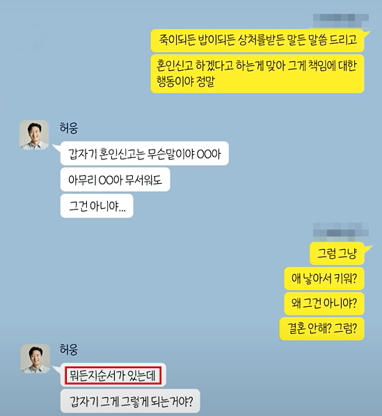 무서우니 부모님께 말하고 혼인신고하자는 A씨의 말에 허웅은 “갑자기 혼인신고는 무슨 말이야? 아무리 무서워도 그건 아니야”라고 말했다.