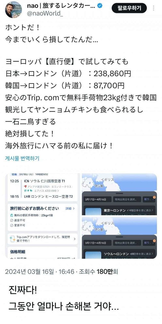 인천공항 경유해서 유럽가는게 2~3배 저렴하다는 사실이 퍼지는 중