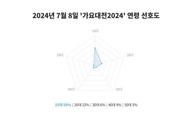 [투어코리아=이지환 기자] 가요대전2024를 주제로 한 랭키파이의 최근 7월 8일 분석이 성별 및 연령별로 어떤 트렌드가 인기 있는지 보여주며 큰 관심을 받고 있다.
