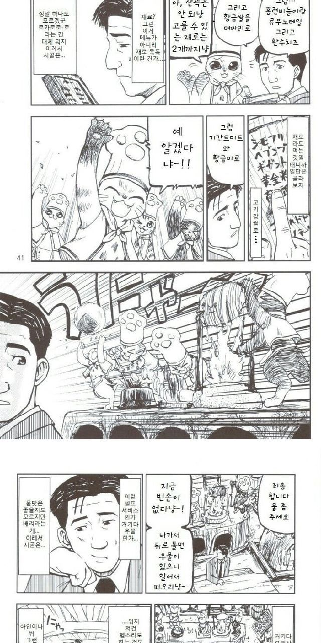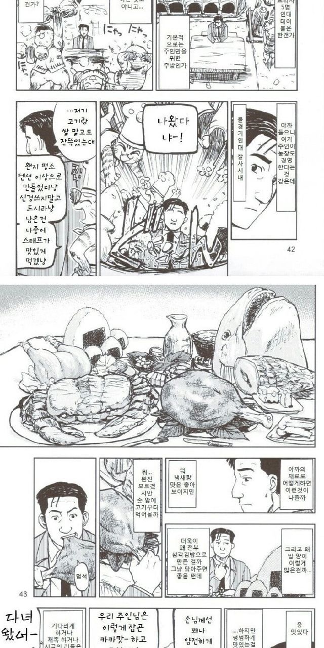 시골에 출장 왔다가 일 꼬여서 식당에서 밥 먹는 망가