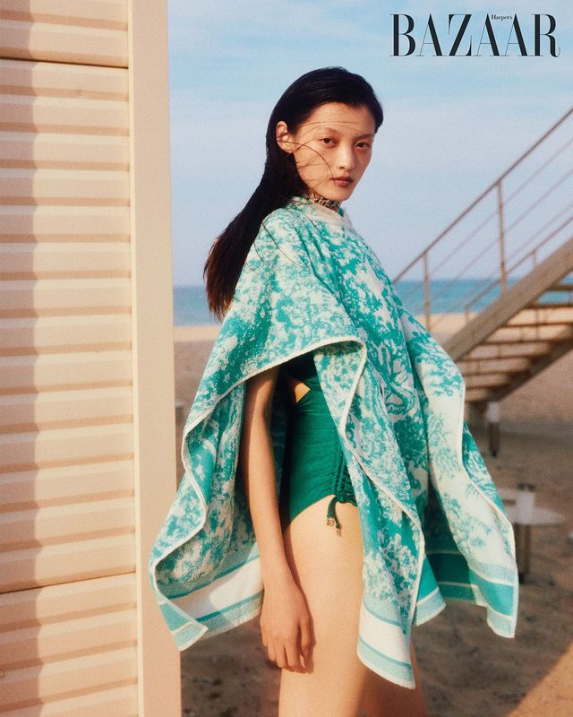 후드 판초는 Dior. 원 숄더 스윔수트는 17만원대 Daze Dayz. 크리스털 장식의 초커는 63만원대 Golden Goose.