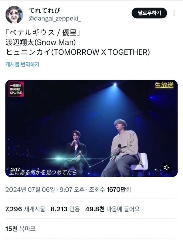 일본 대표 쟈니스 &한국 대표 하이브 콜라보 무대