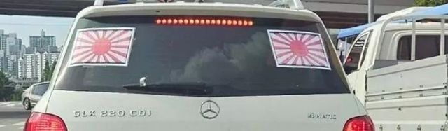 욱일기를 붙인 벤츠 차량 목격담은 이번에 처음 전해진 것이 아니다. 지난 5월 온라인 커뮤니티를 통해 처음 알려진 '욱일기 벤츠'는 당시에도 흰색 벤츠 차량 뒷유리에 욱일기 2장을 붙이고 있었다.