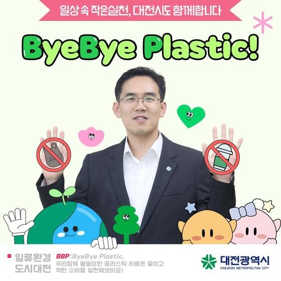 장호종대전시경제과학부시장이9일지속가능한친환경생활실천의일환으로“바이바이플라스틱챌린지”에참여했다.