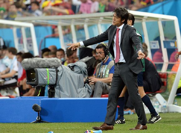 지난 2014년 6월 27일 오전(한국시간) 브라질 상파울루의 아레나 지 상파울루 스타디움에서 열린 2014브라질월드컵 한국 축구국가대표팀과 벨기에 축구국가대표팀의 H조 3차전 경기에서 한국 홍명보 감독이 선수들에게 소리를 지르며 작전지시를 하고 있다. [사진=뉴시스]