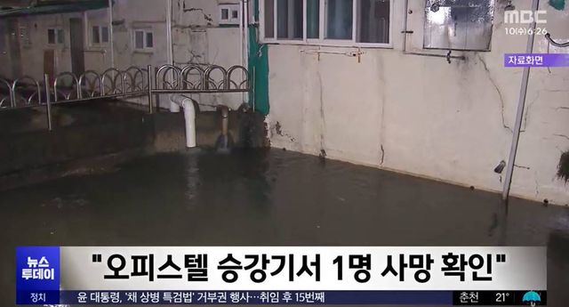 충남 논산의 한 오피스텔 지하 승강기 침수로 1명이 숨지는 사고가 났다.