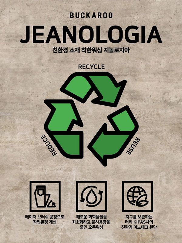 버커루는 지구환경 보호를 위해 ‘지놀로지아(JEANOLOGIA) 데님’ 컬렉션을 선보이며 지속 가능한 패션을 제안했습니다. 지놀로지아 데님은 세계에서 6번째로 큰 데님 원단 공급 업체 중 하나인 터키 ‘키파스(KIPAS)’의 친환경 이노테크 원단을 사용한 제품인데요. 데님 원단 제작 시 발생하는 화학 물질을 최소화하고 기존 워싱에 비해 물 사용량을 최대 90%까지 줄이는 등 오존 워싱의 기술력을 활용한 점이 특징으로 꼽히며 눈길을 끌었죠.