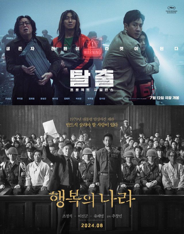 또 다른 유작인 ‘행복의 나라’도 비교적 제작비가 많이 들어간 편에 속한다. 총제작비 106억원, 손익분기점은 270만명 정도로 추산된다. NEW가 배급을 맡은 ‘행복의 나라’는 근현대사를 다룬 시대극이다. 이선균이 똑같이 주연을 맡았으나 앞서 선보이는 ‘탈출’과 완전히 결이 다르다. 1979년 10월 26일, 상관의 명령에 의해 대통령 암살사건에 연루된 피고인 박태주(이선균 분)와 그의 변호를 맡으며 대한민국 최악의 정치 재판에 뛰어든 변호사 정인후(조정석 분)의 이야기를 그렸다. 이선균은 실존 인물인 박흥주 육군 대령을 모티브로 한 주인공 박태주 역을 맡았다. 천만 영화 ‘광해: 왕이 된 남자’ 추창민 감독이 메가폰을 잡은 데다, 지난해 1312만명을 동원한 ‘서울의 봄’과 비슷한 시점의 역사를 다룬 만큼 관객들의 기대감이 높다.