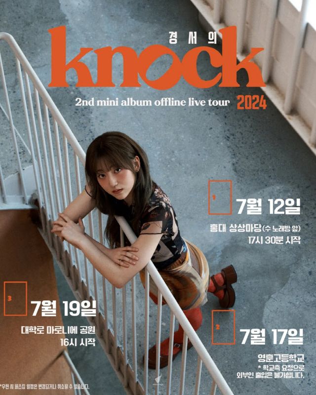 경서는 오는 12일 서울 마포구 홍대 상상마당 앞, 17일 강북구 영훈고등학교, 19일 종로구 마로니에공원에서 미니 2집 ‘노크’(Knock) 발매 기념 오프라인 무대를 가진다.