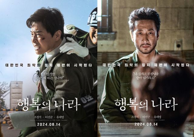 영화 '행복의 나라'(감독 추창민)는 1979년 10월 26일, 상관의 명령에 의해 대통령 암살 사건에 연루된 박태주(이선균 분)와 그의 변호를 맡으며 대한민국 최악의 정치 재판에 뛰어든 변호사 정인후(조정석 분)의 이야기를 그린다.