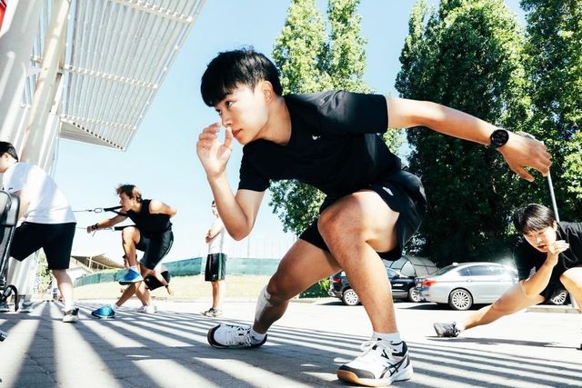 헝가리로 귀화한 스피드스케이팅 전 국가대표 김민석이 헝가리 선수들과 함께 지상 훈련을 하고 있다. / 헝가리빙상경기연맹 홈페이지