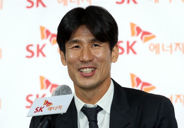 정조국이 2020년 12월 9일 오후 서울 종로구 축구회관에서 열린 은퇴 기자회견에서 밝게 웃고 있다. / 연합뉴스