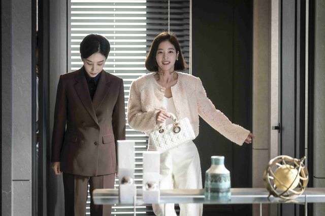 이에 오완수는 기자회견을 열고, 충격적인 사실을 발표해 판세를 완전히 뒤집으며 당당한 기세를 펼쳤다. 김용국의 외도에도 불구하고 왜 이혼을 하지 않는지 의아해하는 도윤에게 완수는 “이혼은 결혼에 진심일 때 하는 거예요”라는 묵직한 명대사를 남겨 뜨거운 반응을 이끌어냈다. 뿐만 아니라, 완수의 충격 발표 이후 굴욕을 겪는 장태라, 그리고 하필이면 똑같은 의상을 입고 같은 행사에서 오완수와 마주친 박미란의 굴욕적인 모습까지 통쾌한 사이다 전개를 이어갔다.