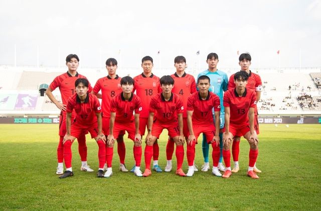 남자 U-18 대표팀. 뒷줄 맨 왼쪽이 축구선수 최준영 / 대한축구협회(KFA) 제공