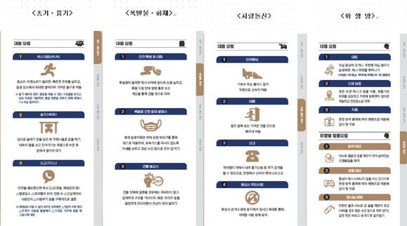 리플릿은 최근 3년간 발생한 3600여 건의 해외 테러 사건을 분석해 △총기·흉기 △폭발물·화재 △차량돌진 △화생방 등 주요 4가지 유형을 중심으로 국내외 전문가들의 의견을 반영해 작성했다.