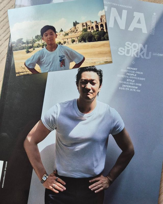 공개된 사진에는 1994년 11살 당시의 손석구와 최근 공개된 남성지의 표지모델로 등장한 손석구의 모습이 담겼다.