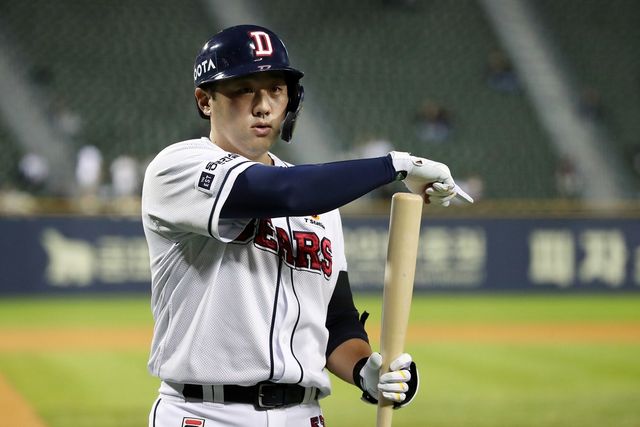 2023년 10월 12일 오후 서울 송파구 잠실야구장에서 열린 프로야구 '2023 신한은행 SOL KBO리그' 두산베어스와 NC다이노스의 경기에서 1회 말 두산 공격 1아웃 주자 없는 상황 두산 양석환이 홈런성 타구에 대해 비디오 판독 요청을 하고 있다. / 뉴스1