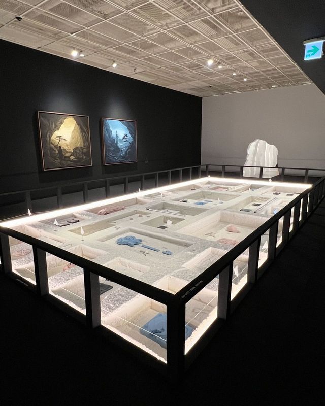 〈서울 3024 – 발굴된 미래〉에서는 먼 미래의 서울 도굴 현장을 구현한 메인 관을 시작으로, 그동안 아샴이 만든 협업 제품이 가지런히 정리된 뉴욕 작업실, 상상 속 포켓몬 동굴까지 재현해 두었죠. 전 세계 방방곡곡 호텔에 묵으며 낙서하듯 호텔 종이에 스케치한 섹션에서는 날 것의 영감을 받을 수 있어요. 특히 서울 전시만을 위해 새로 그린 신작 드로잉, 놓치면 아쉽겠죠?