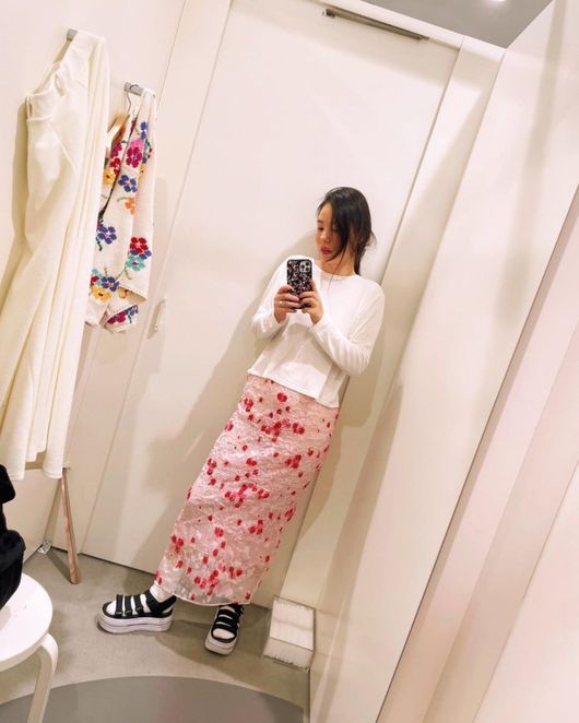 이 사진에서 민효리는 하얀색 상의에 핑크색 롱스커트로 러블리한 매력을 드러냈는데, 이를 본 일부 누리꾼들은 둘째를 임신한 것 아니냐는 반응을 보였다.