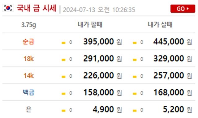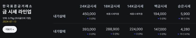 순금(24K) : 매입가 44만 5000원 / 매도가 39만 5000원