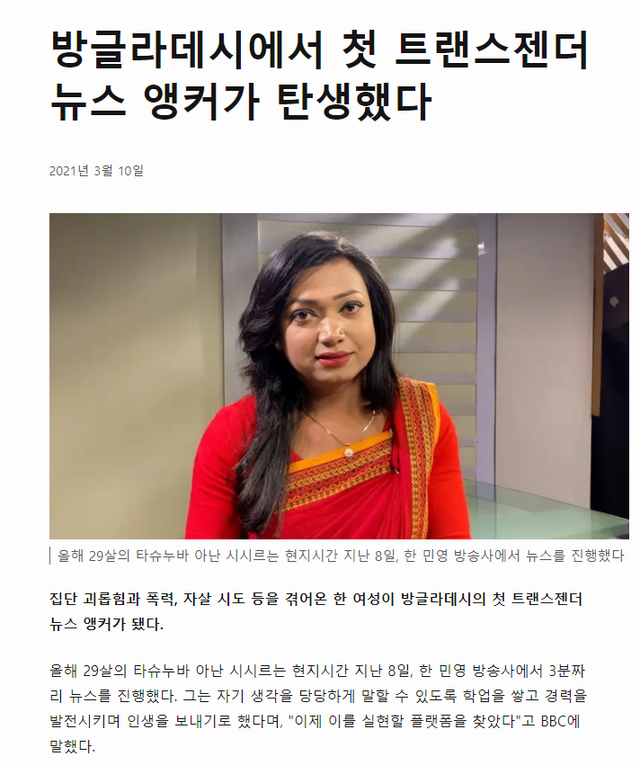 트랜스젠더 아나운서, 트랜스젠더 학교, 트랜스젠더 모스크(이슬람 사원)등이 있으며 트랜스젠더 차별금지법도 존재한다
