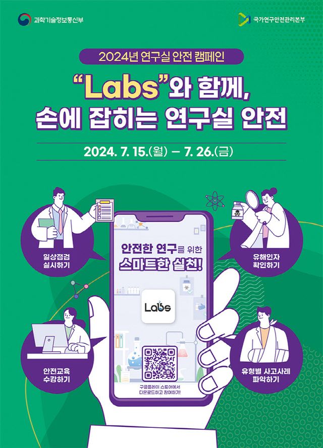 이번 캠페인은 SNS 이벤트 등을 통해 15일 정식 출시된 연구실 안전관리 모바일 앱(Labs)을 홍보하고, 앱을 활용한 연구실 안전관리 실천을 확산하기 위해 마련됐다.