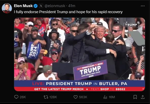 그러면서 "총격 사건에 신속하게 대응해 준 미국 비밀경호국과 모든 법 집행 기관에 감사의 말씀을 전한다"라며 "무엇보다도 집회에서 사망한 사람의 가족과 중상을 입은 다른 사람의 가족에게도 애도를 표하고 싶다"라고 했다.