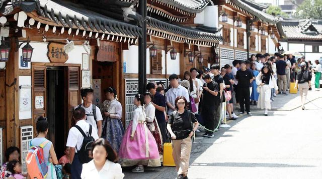 삼계탕집 인산인해. 초복을 하루 앞둔 14일 서울 종로구의 한 삼계탕 전문점을 찾은 시민들이 길게 줄을 지어 입장 순서를 기다리고 있다. 2024.7.14/뉴스1