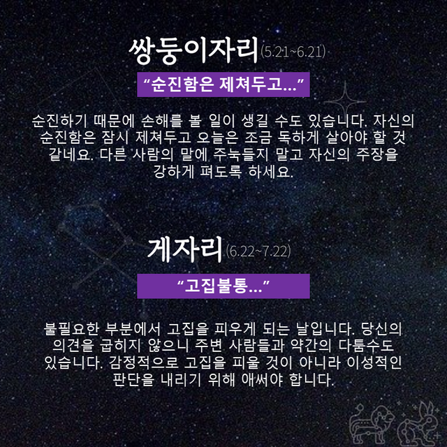 Δ 쌍둥이자리 : 순진함은 제쳐두고…