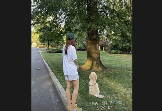 공개된 사진 속 이진은 반팔, 반바지 차림에 모자를 쓴 채 반려견과 공원을 산책 중인 모습이다. 운동화를 신고 매끈한 각선미를 자랑하는 이진의 남다른 뒤태가 눈길을 끈다.