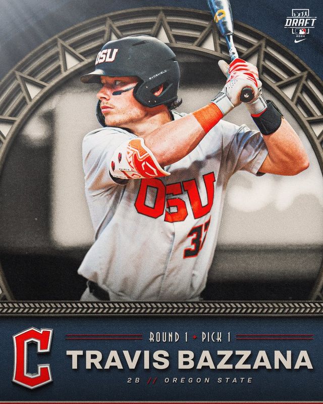 클리블랜드 가디언스 구단은 15일(한국시간) 열린 2024 메이저리그(MLB) 신인 드래프트 1라운드 전체 1순위 지명권을 오리건주립대 2루수 트래비스 바자나(22)에게 사용했다. 호주 출신 바자나는 5툴을 갖춘 유망주로 올해 드래프트 최대어라는 평가를 들었다.
