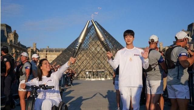 JINはパリから意味のある区間を結ぶ走者として出て、リヴォリ通りの交差点からカルーゼル(Carrousel)広場まで聖火リレーを続けた。JINはルーブル博物館のピラミッドの前で、フランスのフリースタイルスキー元国家代表サンドラ・ローラ(Sandra Laoura)に聖火を渡した。約10分間行われた聖火リレーを終えた彼は、現場に集まった観衆に手を差し伸べながら、自分の役割を終えた。