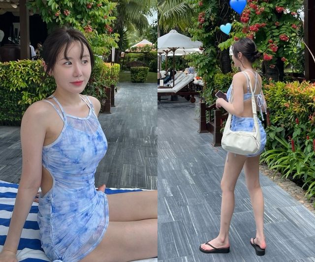 공개된 사진 속 이예림은 호텔 수영장 썬베드에 앉아 여유를 즐기고 있다. 등이 훤히 드러난 파란색 수영복을 입은 이예림은 늘씬한 각선미를 뽐내 시선을 사로잡았다.