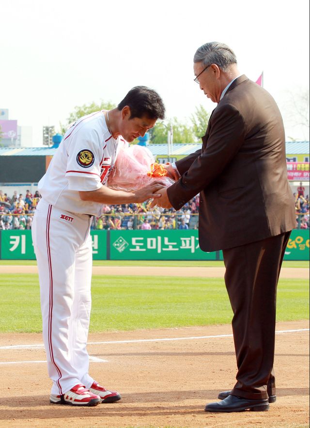 2012년 이종범 은퇴식을 축하하러 온 김응용 전 감독. IS 포토