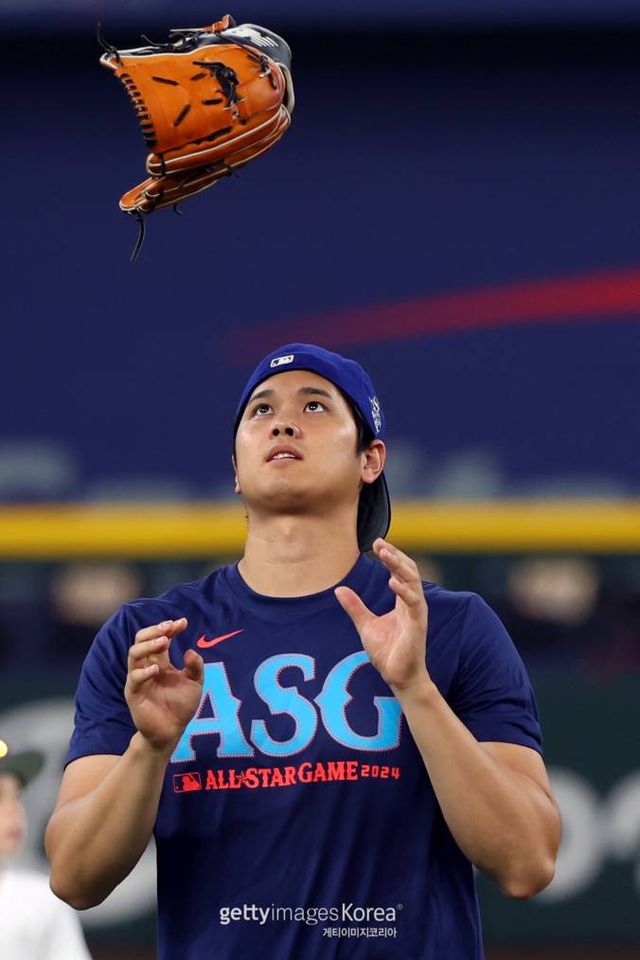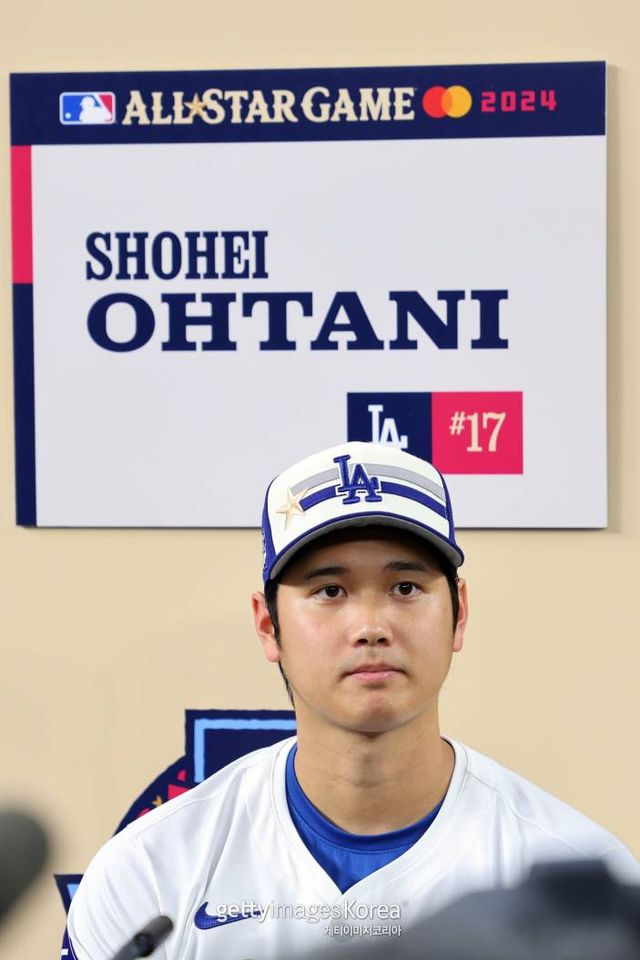 2024 메이저리그 올스타전에 앞서 매체와 인터뷰하는 오타니 쇼헤이의 모습. 게티이미지